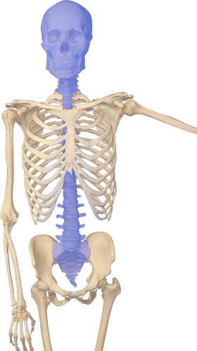 Das lateinische Wort cranium bedeutet Schädel, das Kreuzbein heisst auf Lateinisch os sacrum. Zusammen mit der dazwischenliegenden Wirbelsäule bilden diese das Craniosacrale System (im Bild blau eingefärbt).